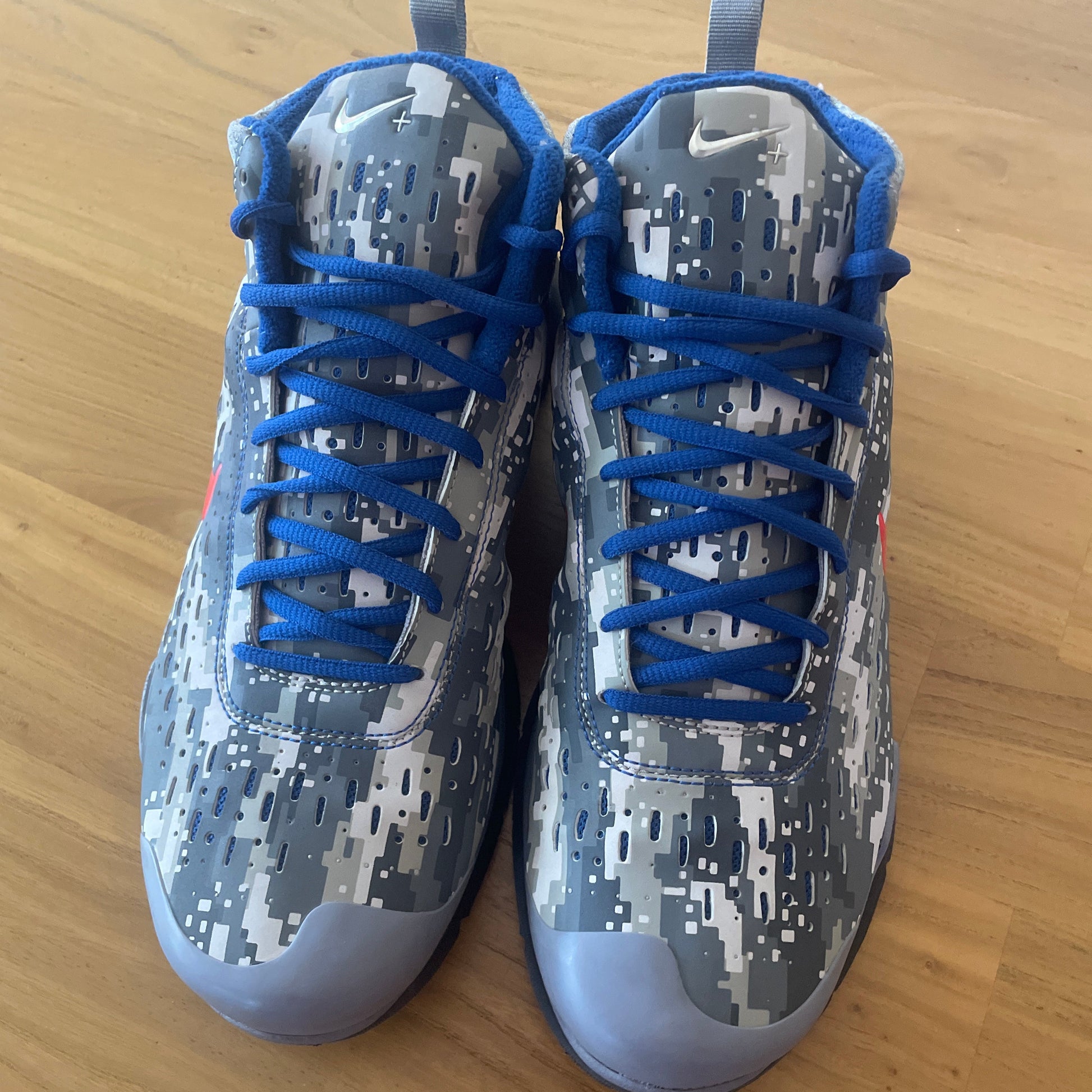 Nike Air Zoom Moire+ ST Stealth. Featuring the a digital camo colorway these sneakers also feature a Nike+ puck in the midsole. These are an unusual mid-top sneaker that is an excellent condition.