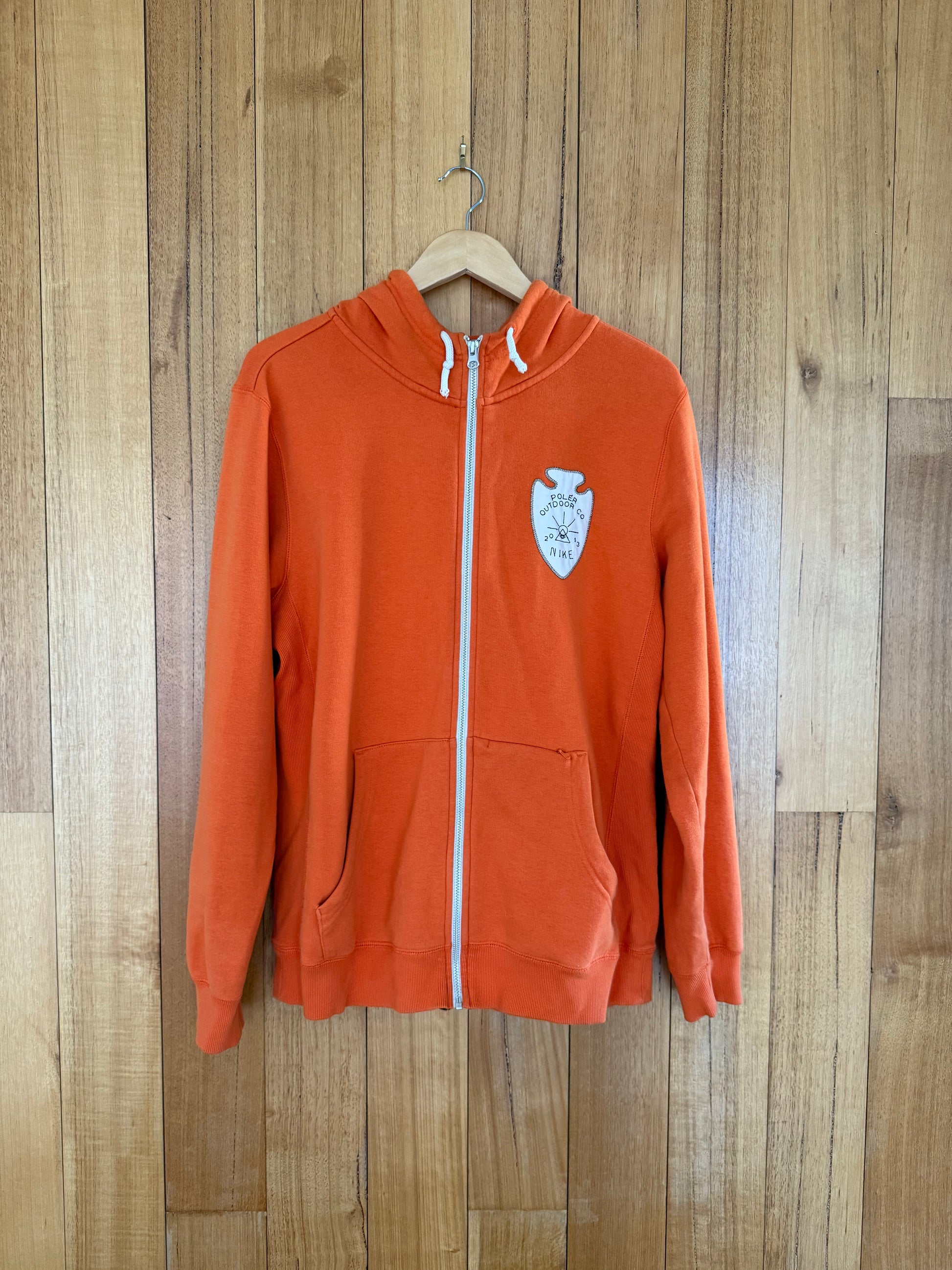 Poler was an outdoor gear and apparel brand founded in Portland, Oregon, in 2009, and known for its #CampVibes aesthetic. This hoodie is part of a collaboration with Nike.